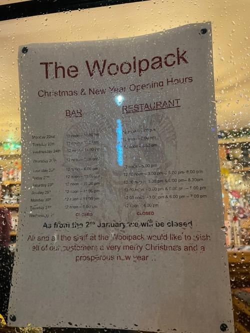 The Woolpack will be closed from 2nd January 2026 according to a notice on the window